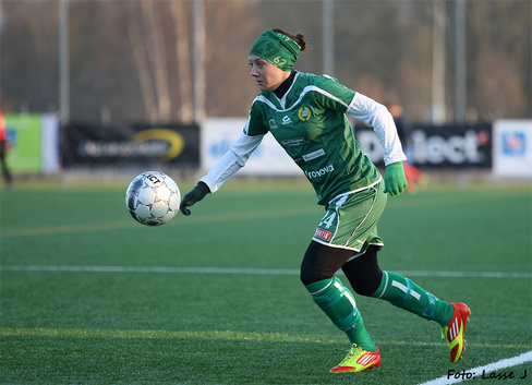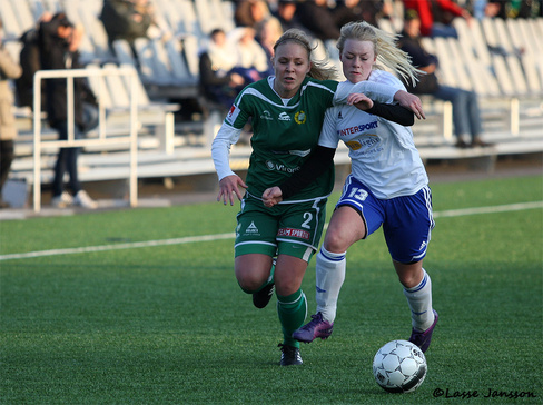 IFK Nyköpings lagkapten Malena Soini jagar boll.