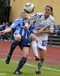 LILLA BILDEN: Matilda Mörn hindrar Josefine Öqvist från att komma loss med bollen. FOTO: Filip Oskarsson.