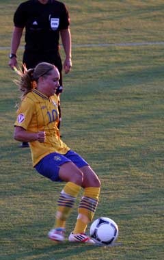 – Ett väl sammansvetsat lag som är lugnt och tryggt i det man gör skulle jag vilja nämna först. Sen finns det ett antal spelare som gjorde avgörande insatser idag. Jessica Höglander i mål spelade strålande och stod för en jätteräddning när hon fick handen på ett pressat skott. Sen sprider hon ett lugn i straffområdet som återspeglar sig i backlinjen. Elin Rubensson gjorde förutom straffmålet också en bra match. I första halvlek hotade hon mycket i djupled men även i andra när hon fick gå ner och hjälpa till lite mer i defensiven.