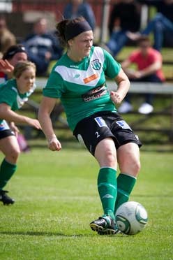 BILDEN: Mikaela Uthas slår in en av sina två straffsparkar. FOTO:Christer Hansson.