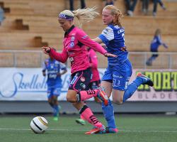 FOTNOT: Pernille Harder blev den andra spelaren i år som gjort fyra mål i samma match. Christen Press gjorde lika många också mot Sunnaå i Tyresös bortamatch.