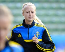 Antonia Göransson, som till vardags spelar i Tyskland för Turbine Potsdam, gick från pigg till att sitta och hänga en aning. Trött?