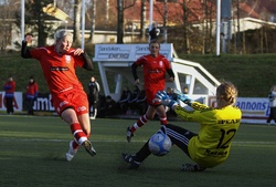 Emelie Strand ger Höllviken ledningen med 1-0. FOTO: Anders Tegnér.