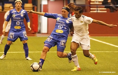 Alla straffarna gick på mål. några via ribba och stolpe. Linköpings målvakt Sofia Lundgren räddade fyra och gjorde själv ett straffmål. Carola Söberg räddade alltså tre.