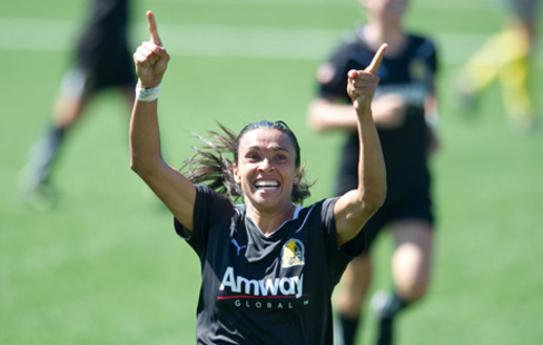 Marta jublande glad efter att ha vunnit WPS-ligan. Foto: John Todd/isiphotos.com