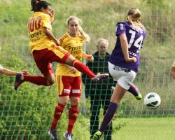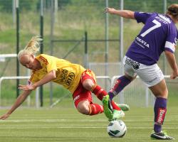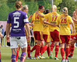 – Vi kommer inte upp i vår nivå och Tyresö gör det riktigt bra. Vi låter dem få spela den fotboll som de vill. Det känns helt okej i början och ribbskottet, där hade vi kunnat få 2-1 med lite flyt. Istället har de en omställning till ett psykologiskt viktigt mål, sade Sofia Karlsson som var besviken över resultatet men positivt inställd till att Jitex efter många turer äntligen kunde spela på Åbyvallen igen.