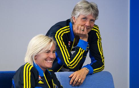 Onsdagens presskonferens inleddes av förbundskapten Pia Sundhage på sedvanligt sätt med en kort utvärdering av EM.