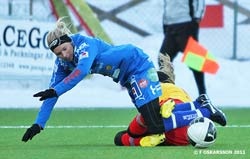 Tilda Heimersson reducerade för Linköping framspelad av lagets bästa spelare för dagen Jonna Andersson.