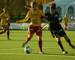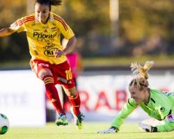 När hon fälldes blev det straff för Tyresö och Marta ville kvittera själv. Hon valde att sätta den till höger om Kristin Hammarström och precis som Nadine Angerer i VM-finalen 2007 dök Hammarström i sin vänstra hörna och räddade bollen rätt så lätt. Denna miss borde ha gett Göteborg ännu mer luft under vingarna, men så småningom kom kvitteringen genom den andra spelaren som just nu är helt odiskutabel i Tyresös startelva. Göteborgs försvar slarvade vid ett inlägg i strafforådet och Christen Press kom till skott och sådana lägen missar hon helt enkelt inte i dessa dagar. 1:1 efter 41 minuter.
