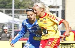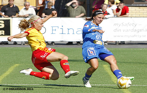 LILLA BILDEN: Lotta Rohlin, utsedd till LFC:s bästa spelare fick hålla bra koll på förra lagkompisen Josefine Öqvist. FOTO: Filip Oskarsson