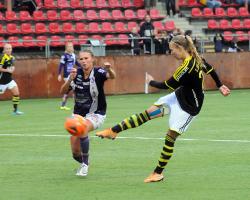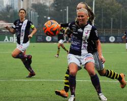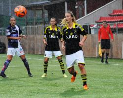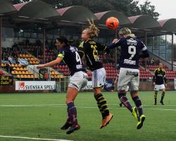 Jitex som hade en rätt så stor hejaklack med sig från andra sidan Sverige tog till och med ledningen i matchen, men linjedomaren viftade med flaggan och målet bortdömdes pga offside. Anna Oskarsson hade mött ett snabbt inlägg från höger och lämnat Brittany Angehl chanslös, men det var alltså inget mål som skrevs in i protokollet.