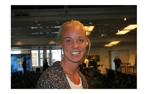 Lilla bilden: Caroline Seger i solskenet på Malmö Ip där hon såg matchen Malmö-Umeå. Foto: Fredrik Hasselgren