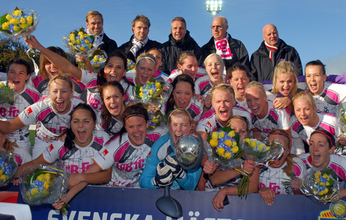 När matchen gått in på övertid och åskådarna ställt sig upp gjorde ännu en försvarsspelare sista målet, Lina Nilsson bytte gedigna bollbrytningar mot att hålla sig framme och pricka in 6-0 långt nere i straffområdet.