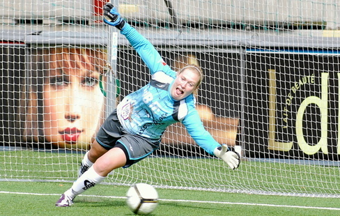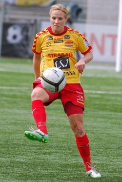 MITTBILDEN: Tyresös landslagsback Annica Svensson tar ner bollen.