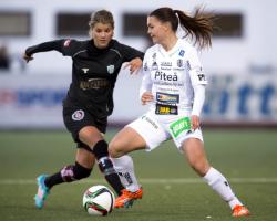 Det var mycket Kopparbergs/Göteborg FC i inledningen av matchen. Efter dryga 25 minuter hade Piteå jobbat sig in och tog för sig mer och mer. De hade en rad ganska giftiga chanser, bland annat på i en sekvens som börjar med ett bra läge för Piteås Pauline Hammarlund som går på ett avslut som tvingar Loes Geurts till en räddning. Slag i slag följer sedan två riktigt vassa hörnor från Piteå. Kopparbergs/Göteborg FC:s målvakt Loes Geurts får bekänna färg och gör det med den äran.