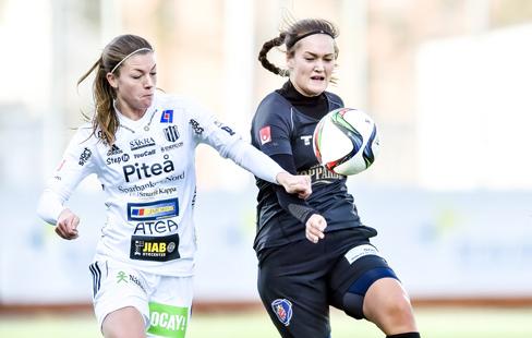 I andra halvlek får Manon Melis fler bollar att jobba med på sin vänsterkant än det blev i första och sätter press på Piteå.