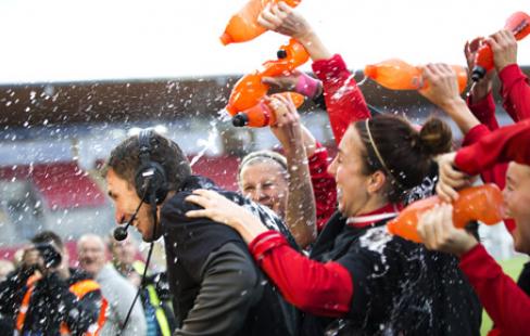 När domare Linn Andersson blåste av matchen efter 90 minuters spel och tre minuters tilläggstid utbröt de stora jublet i Örebro. Spelarna samlades i en ring och drog på sig tröjor som innehöll budskapet att KIF Örebro är ett lag för Champions League.