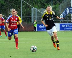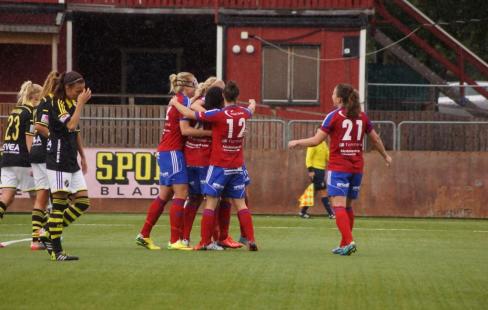 I den 28:e minuten kunde Ann-Helen Grahm vara nöjd, ett inlägg av Emma Sjödahl nickades in av Jane Ross. Bortalaget tog ledningen i en match där både lagen inte spelade sin bästa fotboll. Den nya amerikanska målvakten i AIK, Brittany Anghel, hade ingen chans. Alldeles för fri kom Jane Ross och kunde snyggt placera bollen.