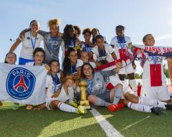 Franska Paris Saint-Germain var till en början det starkare laget i F17-finalen mot San Gabriel på SKF Arena. De första tio minuterna var det PSG helt och hållet. Först efter en dryg kvart spelad av första halvlek vaknade spanjorskorna till och började sätta press på ett högt liggande PSG. Fransyskorna hade kontroll över halvleken och trots att San Gabriel tog sig igenom deras backlinje ett antal gånger, kunde PSG hålla dem borta och gick till pausvila med 0-0.