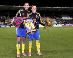 Sverige vann dock samtliga tävlingsmatcher under året. Man gick obesegrat genom VM-kvalet. Och Lotta Schelin öste in mål. I en rasande fart. För lite drygt sex veckor sedan gjorde hon sitt 73:e mål i den blågula landslagströjan. När hon snodde bollen framför fötterna på världens bästa målvakt, Nadine Angerer, och rullade in 1-0 hemma mot Tyskland var det inte vilket fotbollsmål som helst hon firade. Det var målet som fick henne att gå över en magisk gräns och bli störst genom alla tider.