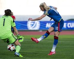 Anja Mittag hade ett avslut som Hedvig Lindahl räddade till hörna. Första halvlekens mål kunde hon inte göra något åt men därefter visade hon klass med sitt lugn och ett antal fina räddningar.